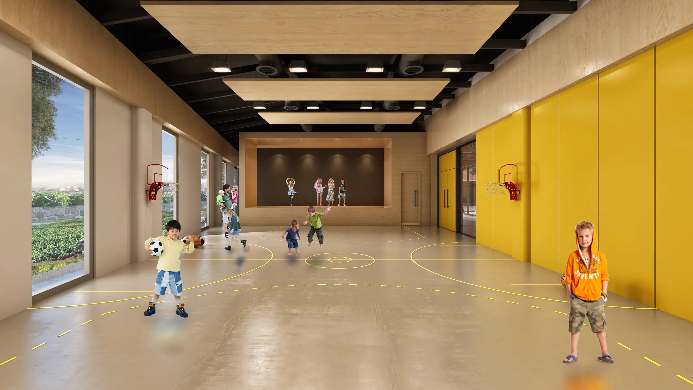 Sirkülasyon alanları aynı zamanda sınıflardaki eğitimin devamı olan oyun alanlarına dönüşmektedir. Yaz aylarında avlu cam bölücüleri tamamen açılıp oyun alanıyla beraber çalışmaktadır. Kütleler betonarme taşıyıcı sistemle çözülmüş, bunları bağlayan sirkülasyon alanları ve çatı betonarmeye mesnetlenen çelik taşıyıcı sistemle çözülmüştür.
