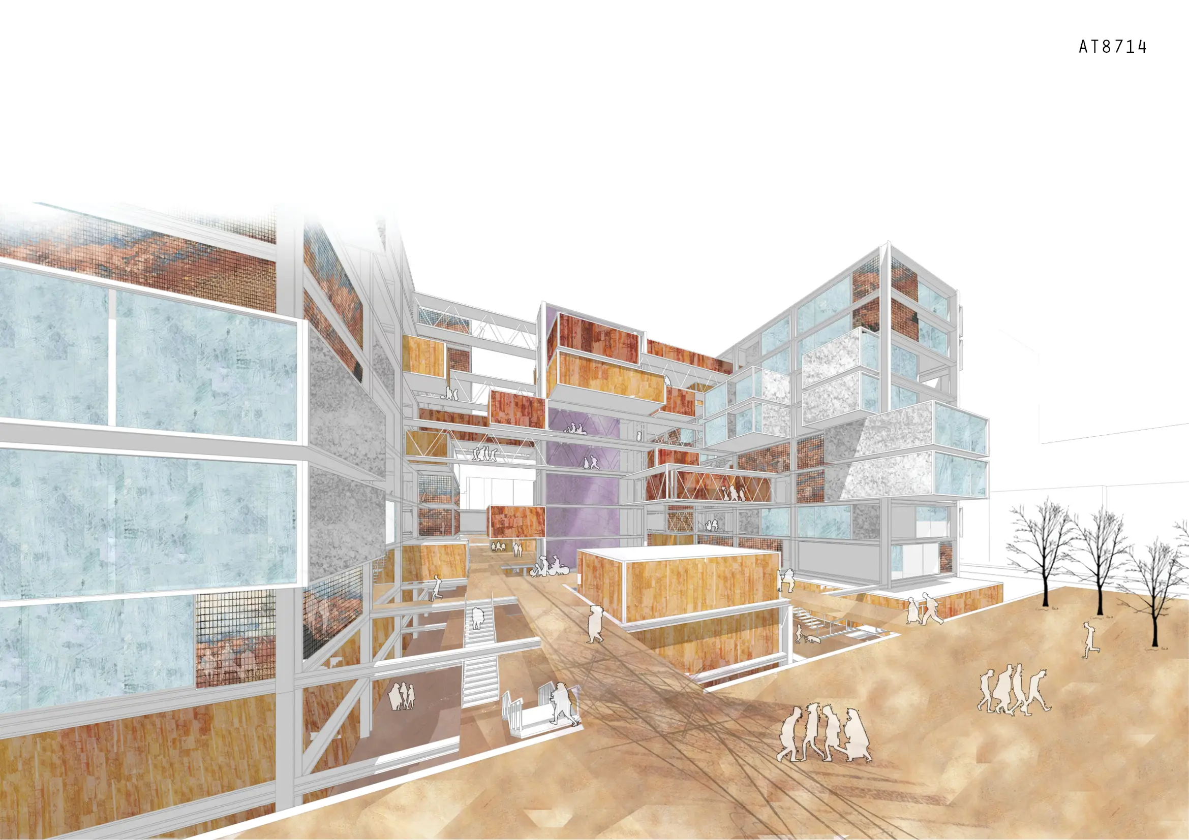 Tasarım, konut blokları ile meydan arasındaki bağlantıları yeniden kurarak avlular ve düşey modüller aracılığıyla kamusal ve yarı kamusal mekânlar üretir.